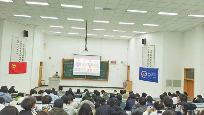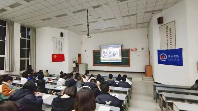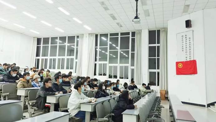 学生会主席丁宇杰作为本次团课主讲人,分别向大家介绍了《中国共产主义青年团章程》、《关于新形势下推进从严治团的规定和高校共青团改革实施方案》。中国共产主义青年团是中国共产党领导的先进青年的群团组织,是广大青年在实践中学习中国特色社会主义,是中国共产党联系青年群众的桥梁和纽带,是中华人民共和国的重要社会支柱之一,也是中国共产党的助手和后备军。在关于中国共产党诞生百年的视讯中,我们体会了当年巴黎和会中我国被列强逼迫割让山东的屈辱,了解了“五四运动”的起因和当时的青年热诚的爱国心。从嘉兴南湖的红船上,中国共产党诞生到逐渐沉淀,发展为全国性的思想启蒙运动,为我们揭示中国共产党人的百年奋斗史是一部包含血泪、艰辛的奋斗史。最后,丁宇杰学长指出,我们青年学生应该有加入共青团的目标,了解团员的义务,努力宣传、践行党的基本路线和各项方针,遵守好团的纪律,执行团的决议。