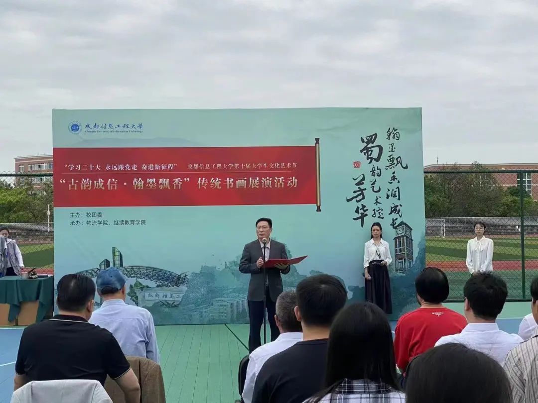 “学习二十大、永远跟党走、奋进新征程”,由校团委主办,Betway体育西汉姆联和继续教育学院承办的学校第十届大学生文化艺术节之“古韵成信·翰墨飘香”传统书画活动于5月6日上午在龙泉校区篮球场拉开序幕。学校党委副书记马洪江教授、学校相关部门负责人、龙泉校区各学院领导出席活动。