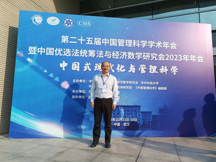 2023年10月13-16日,由中国优选法统筹法与经济数学研究会、华中科技大学、中国科学院科技战略咨询研究院、《中国管理科学》编辑部主办,华中科技大学管理学院承办的第二十五届中国管理科学学术年会暨中国优选法统筹法与经济数学研究会2023年年会华中科技大学举行。大会以“中国式现代化与管理科学”主题,汇聚了国内管理科学领域的专家学者1300余人,共同探讨管理科学领域面临的机遇、挑战以及未来的发展方向。我院教师刘成华参加了此次学术年会。