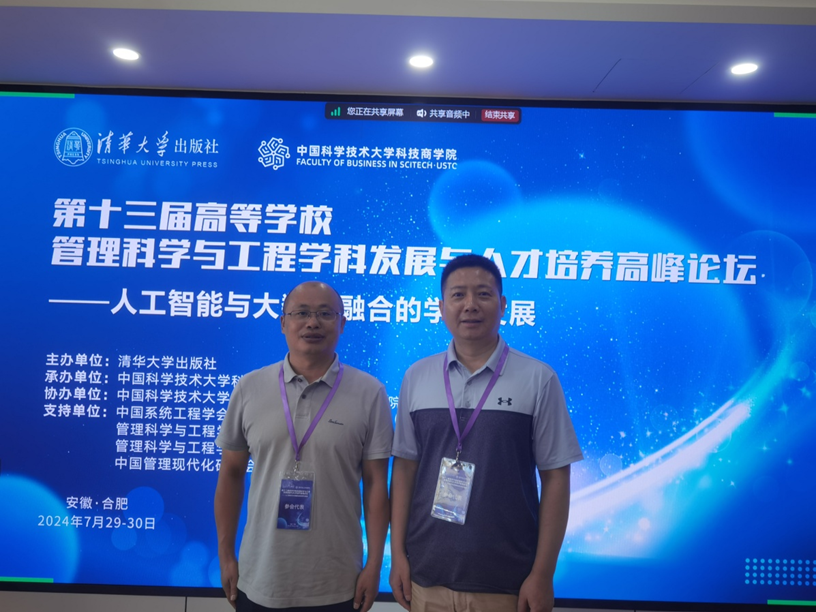为深入学习贯彻党的二十大精神,深化高等学校教育改革,促进管理科学与工程类学科发展,推动人工智能与大数据融合的学科发展,由清华大学出版社有限公司主办,中国科学技术大学科技商学院承办,中国系统工程学会信息系统工程专业委员会(CNAIS)、管理科学与工程学会信息系统与数字化创新分会、管理科学与工程学会大数据与商务分析分会支持的“第十三届高等学校管理科学与工程学科发展与人才培养高峰论坛——人工智能与大数据融合的学科发展”于2024年7月29-30日在安徽省合肥市召开。我院高永全副院长、刘成华副教授参加了本次人才培养高峰论坛。