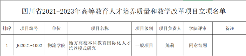 根据《四川省教育厅关于开展 20212023 年高等教育人才培养质量和教学改革项目申报工作的通知》(川教函〔2021532号)、《四川省教育厅关于公布2021-2023年四川省高等教育人才培养质量和教学改革项目立项名单的通知》(川教函〔2022114号)及《四川省教育厅关于开展2021-2023年四川省高等教育人才培养质量和教学改革项目结题验收的通知》文件要求及学校对相关工作的部署安排,学院组织专家对获批2021-2023年四川省高等教育人才培养质量和教学改革项目开展结题验收工作,具体结果见下表。