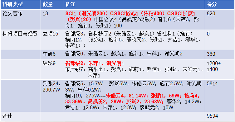 2. 完成系科研任务:科研立项15项、在研6项、结题9项;科研到账24项,其中纵向5项,横向19项,到账经费290.7万元;发表论文13篇,其中SCI1篇,CSSCI核心1篇,CSSCI扩展1篇。