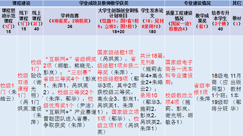 (1)完成校内专业评估,电商专业获得B+等级。老师们基本都是按质按量按时完成了分配的任务。