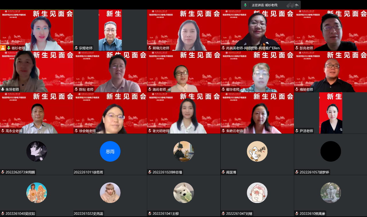 2022年9月16日,Betway体育西汉姆联电子商务系召开2022级新生见面会。受疫情影响,本次会议在线上举行。Betway体育西汉姆联院长施莉教授、副院长谢光明副教授、电子商务系主任朱萍副教授、副主任杨杉教授,及电子商务系的专任教师18人和2022级电子商务221和222班全体80名同学出席会议。
